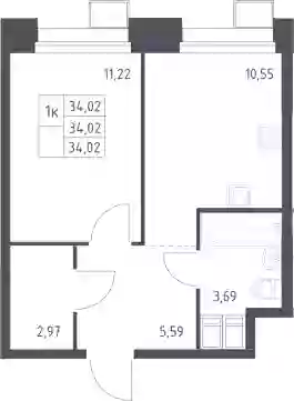 9 928 076 ₽1-к.квартира, 34.02 м², 14 эт.
