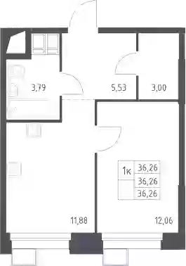 12 259 138 ₽1-к.квартира, 36.26 м², 21 эт.