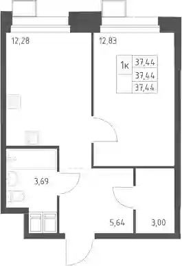 11 711 742 ₽1-к.квартира, 37.69 м², 17 эт.