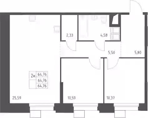 14 959 994 ₽2-к.квартира, 64.52 м², 23 эт.