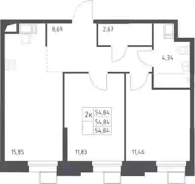 15 072 369 ₽3-к.квартира, 55.74 м², 8 эт.