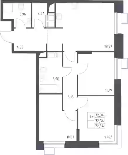 18 954 814 ₽3-к.квартира, 72.31 м², 4 эт.