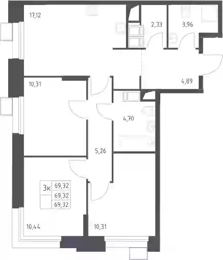 14 519 660 ₽3-к.квартира, 65.48 м², 13 эт.