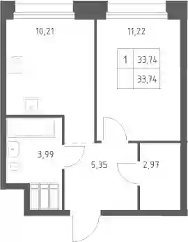 11 221 259 ₽1-к.квартира, 34.49 м², 22 эт.