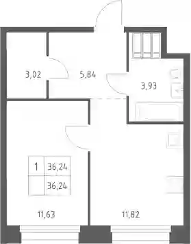 11 225 892 ₽1-к.квартира, 36.47 м², 5 эт.