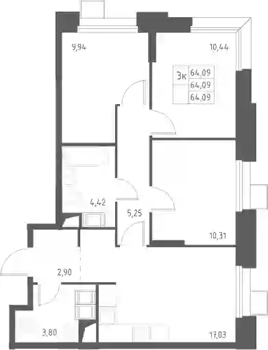 17 492 502 ₽3-к.квартира, 61.86 м², 11 эт.