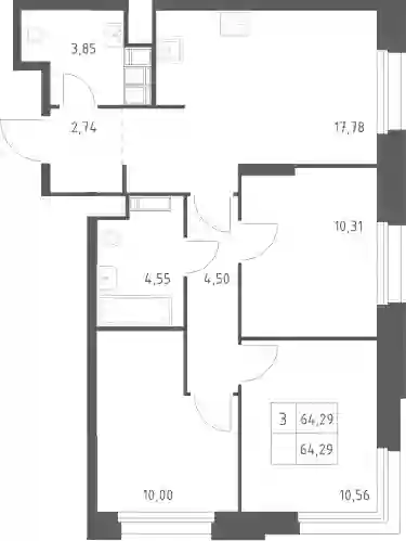 13 315 146 ₽3-к.квартира, 64.76 м², 10 эт.