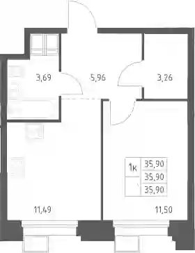 11 383 896 ₽1-к.квартира, 38.59 м², 11 эт.