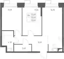 18 979 494 ₽3-к.квартира, 55.97 м², 7 эт.