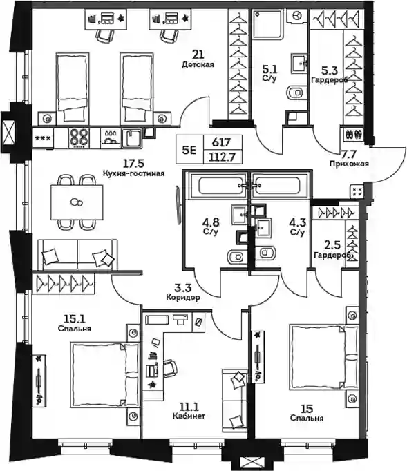 5+ комн.