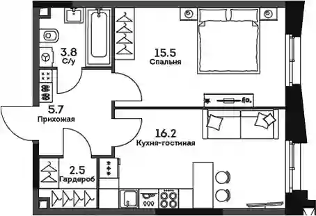 26 381 690 ₽2-к.квартира, 43.7 м², 20 эт.
