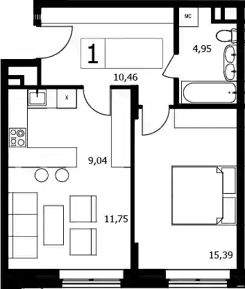 24 529 642 ₽1-к.квартира, 47.7 м², 1 эт.