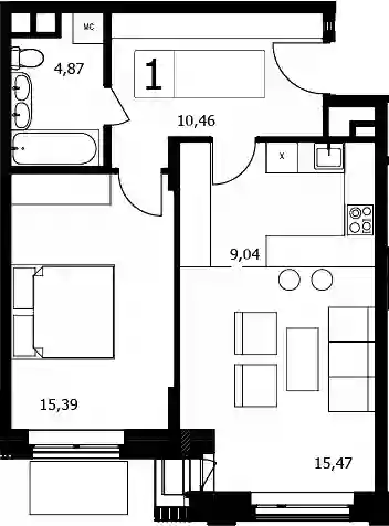 24 529 642 ₽1-к.квартира, 47.7 м², 1 эт.