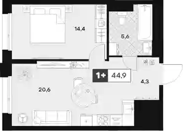 2-к.квартира, 44.9 м², 8 эт. в ЖК U2 Корпус С1