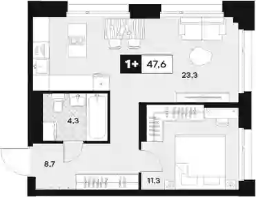 2-к.квартира, 47.6 м², 8 эт. в ЖК U2 Корпус С1