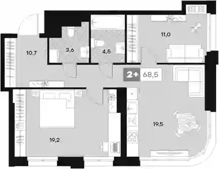 3-к.квартира, 68.5 м², 9 эт. в ЖК U2 Корпус С1