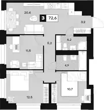 31 200 000 ₽3-к.квартира, 72.6 м², 12 эт.