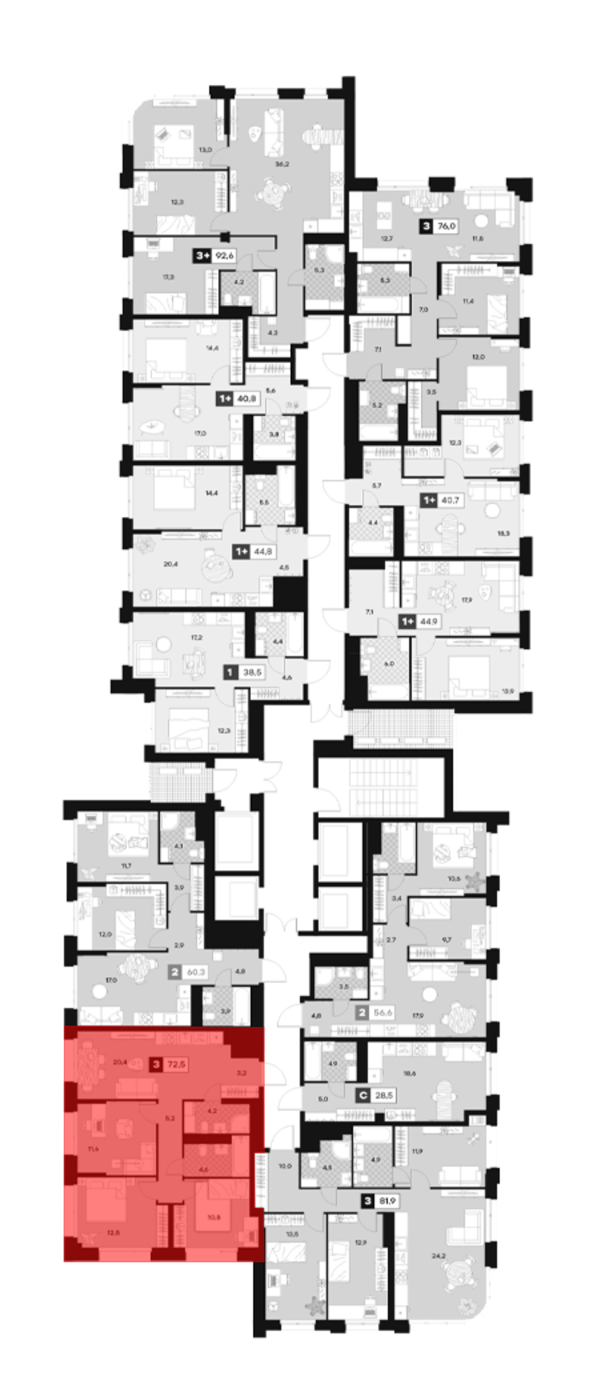3-к.квартира, 72.6 м², 12 эт. в ЖК U2 Корпус С1