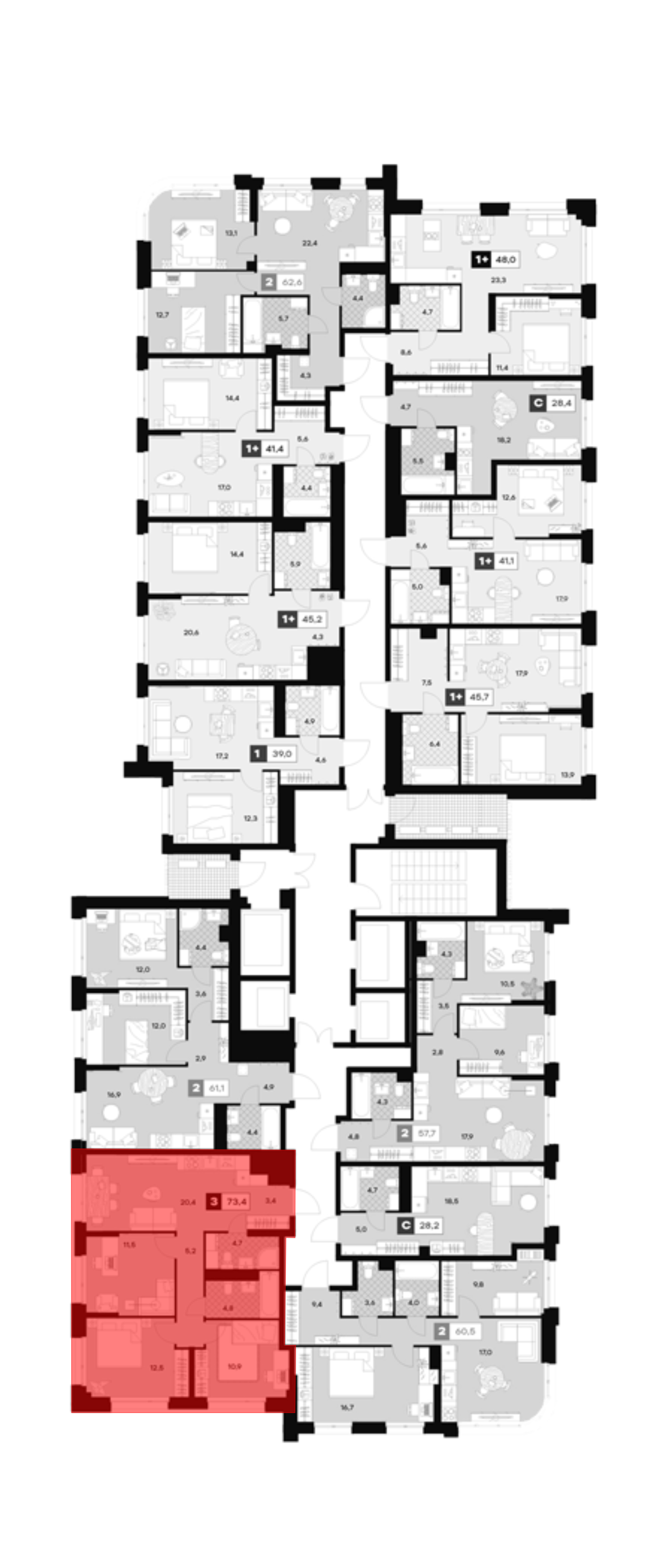 3-к.квартира, 72.8 м², 6 эт. в ЖК U2 Корпус С1