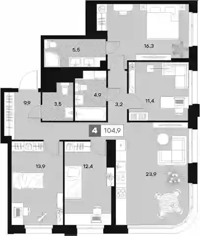 4-к.квартира, 104.9 м², 23 эт. в ЖК U2 Корпус С1