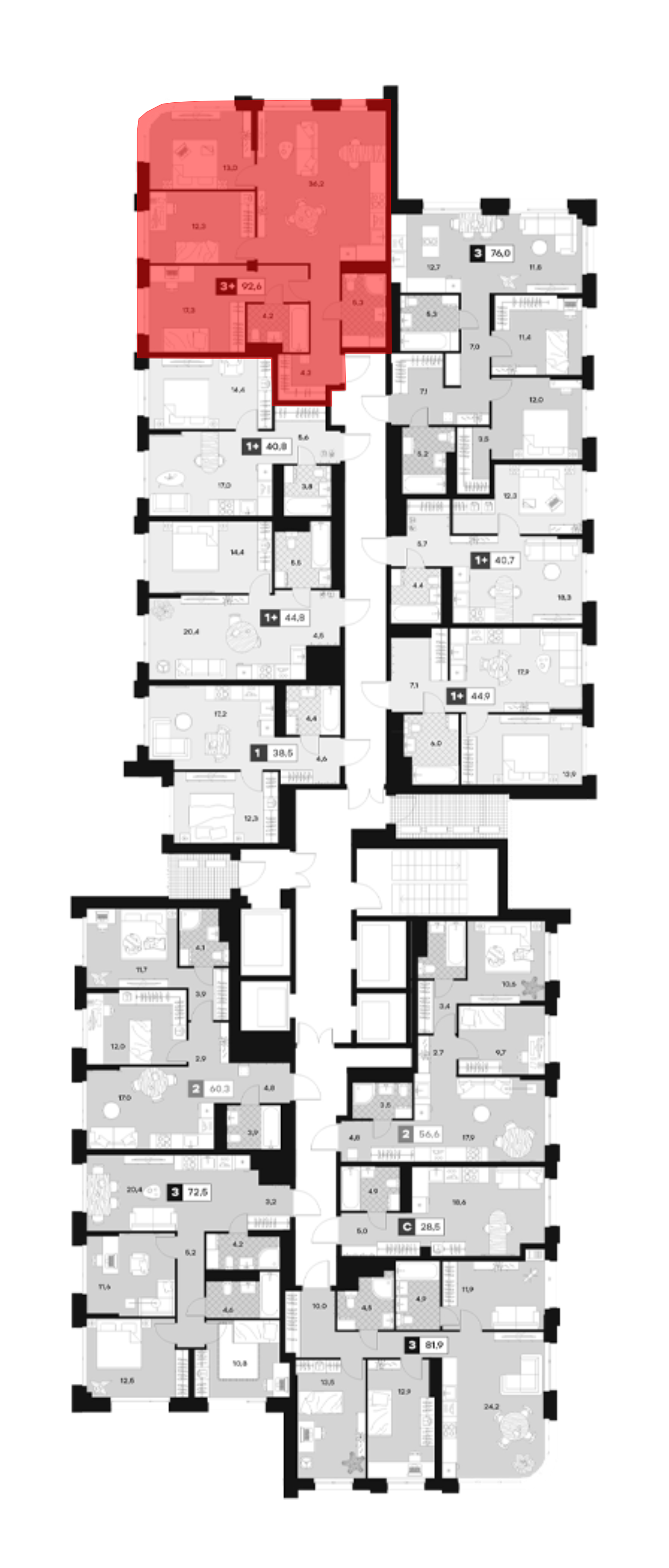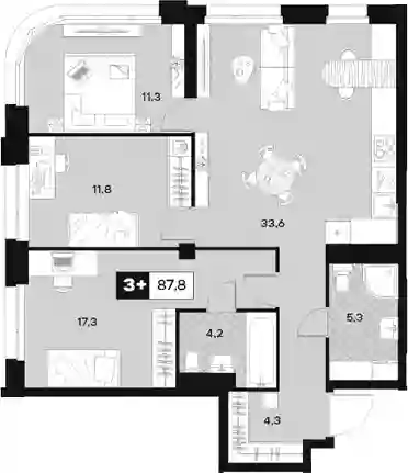 4-к.квартира, 87.8 м², 13 эт. в ЖК U2 Корпус С1