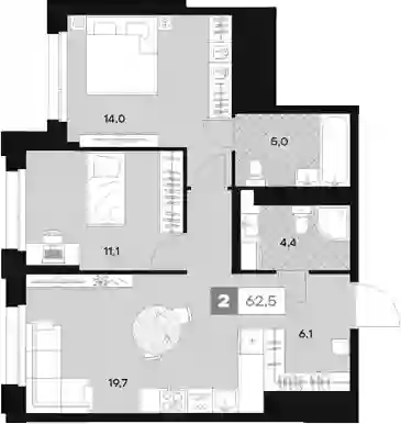 25 900 000 ₽2-к.квартира, 61.9 м², 2 эт.