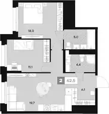 2-к.квартира, 62.5 м², 21 эт. в ЖК U2 Корпус С2