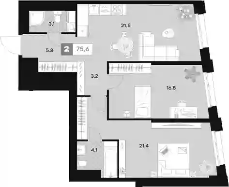 2-к.квартира, 75.6 м², 25 эт. в ЖК U2 Корпус С2
