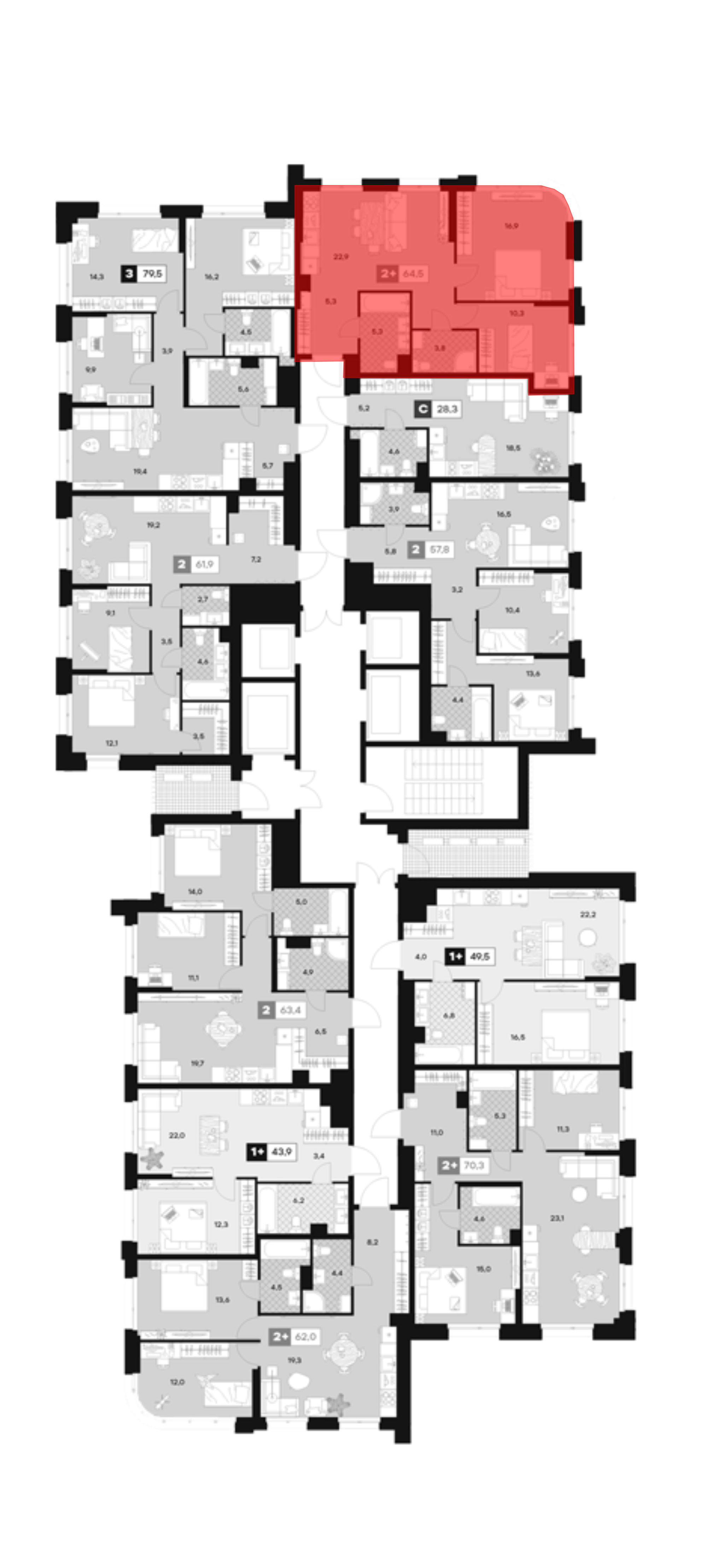 3-к.квартира, 63.9 м², 7 эт. в ЖК U2 Корпус С2