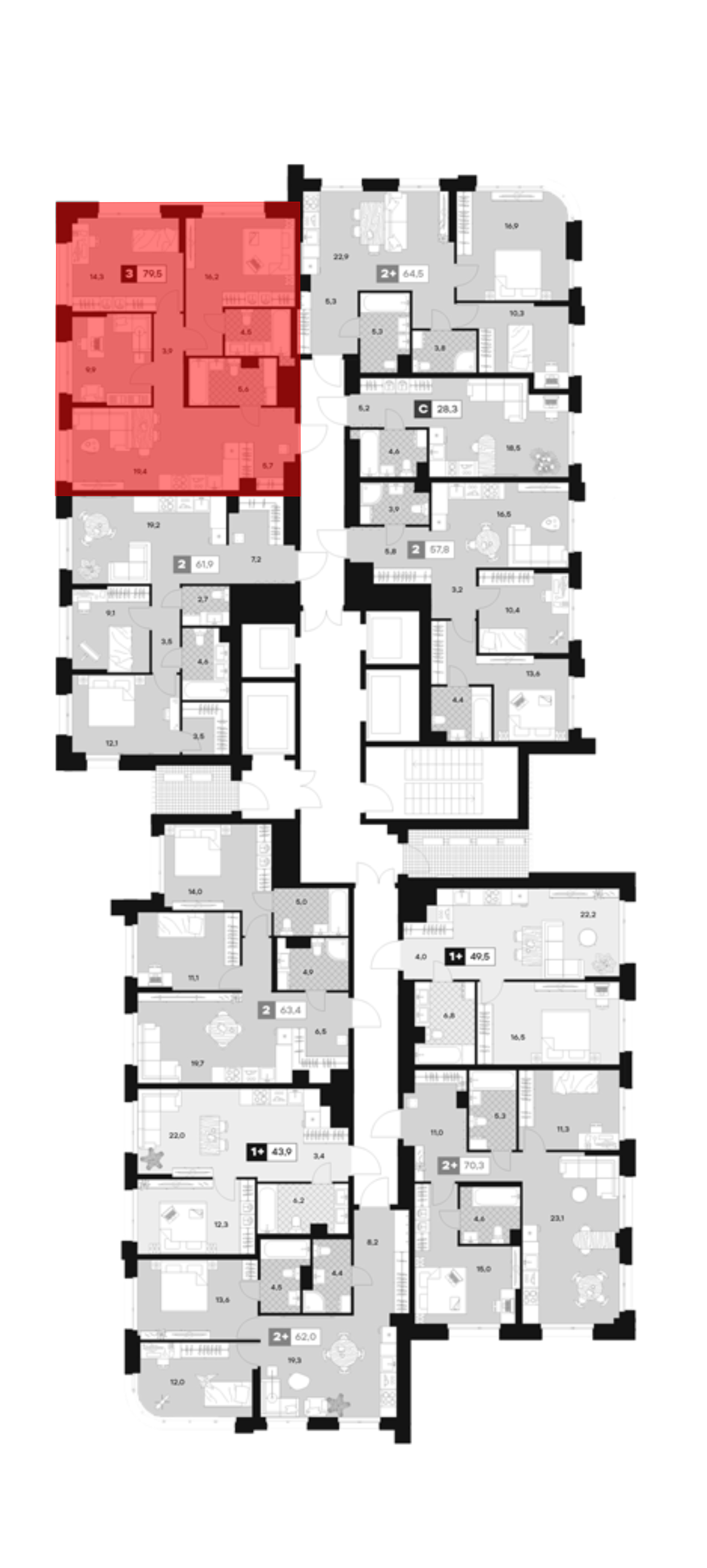 3-к.квартира, 78.5 м², 5 эт. в ЖК U2 Корпус С2