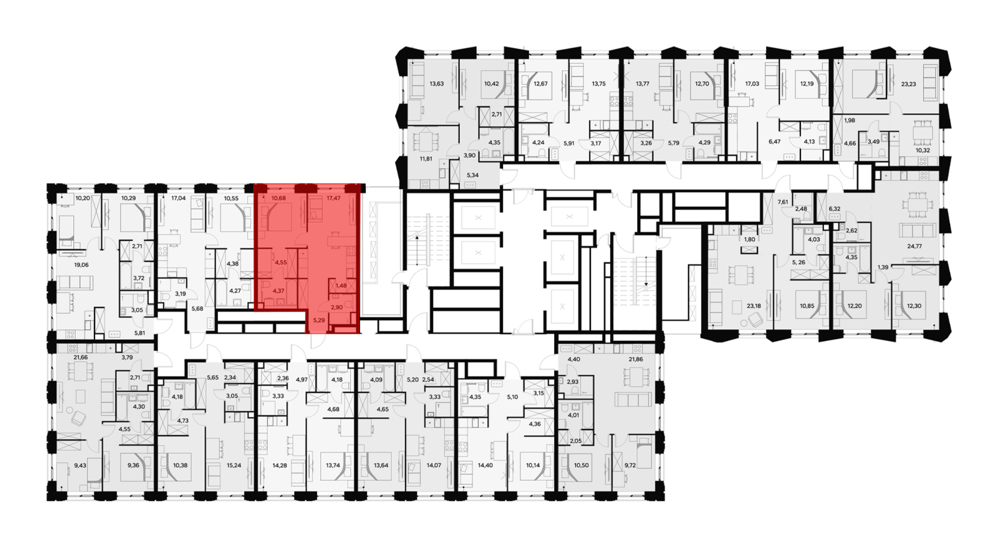 В проекте представлены квартиры с 1–4 комнатами, включая европланировки, двухуровневые форматы, варианты с террасами, лоджиями, а также опции с мастер-спальнями и гардеробными. В помещениях установлены увеличенные или панорамные окна, а высота потолков варьируется от 2,85 до 3,1 м. Из некоторых квартир открываются виды на Москву-реку. Также, для дополнительного комфорта жильцов, предусмотрены системы умного дома и климат-контроля.