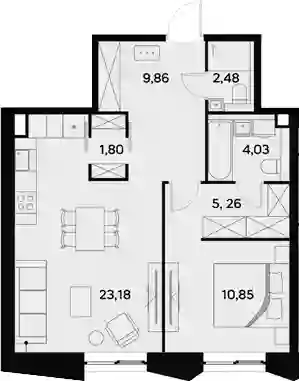 23 018 280 ₽2-к.квартира, 51.96 м², 21 эт.