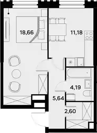 1-к.квартира, 42.27 м², 38 эт. в ЖК UltimaCity Дом 2
