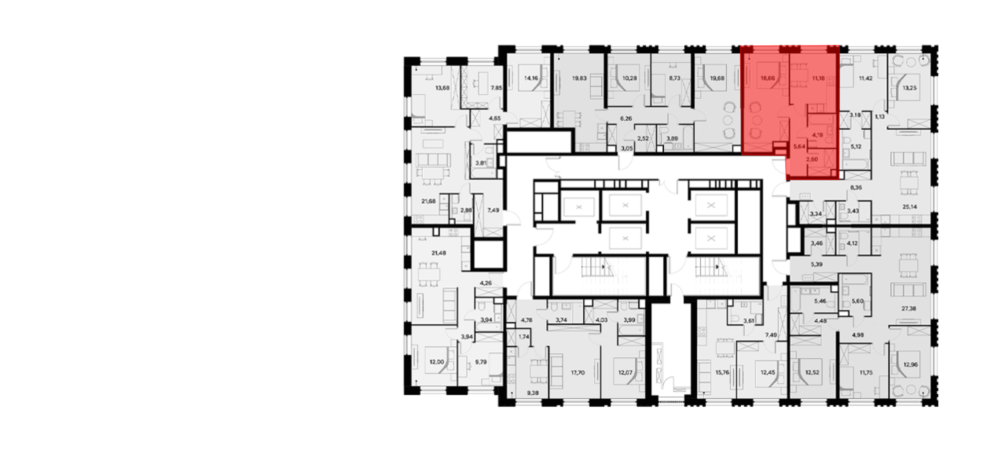 В проекте представлены квартиры с 1–4 комнатами, включая европланировки, двухуровневые форматы, варианты с террасами, лоджиями, а также опции с мастер-спальнями и гардеробными. В помещениях установлены увеличенные или панорамные окна, а высота потолков варьируется от 2,85 до 3,1 м. Из некоторых квартир открываются виды на Москву-реку. Также, для дополнительного комфорта жильцов, предусмотрены системы умного дома и климат-контроля.