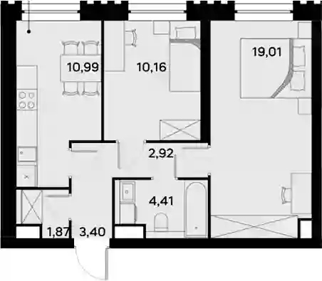 19 641 545 ₽1-к.квартира, 49.11 м², 7 эт.