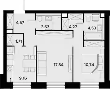 21 878 480 ₽2-к.квартира, 56.68 м², 9 эт.