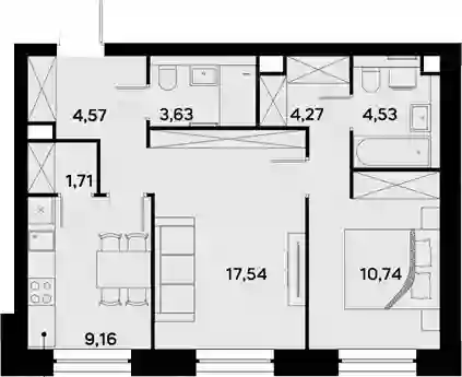22 334 291 ₽2-к.квартира, 54.17 м², 31 эт.