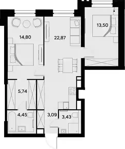 27 078 705 ₽3-к.квартира, 68.85 м², 15 эт.