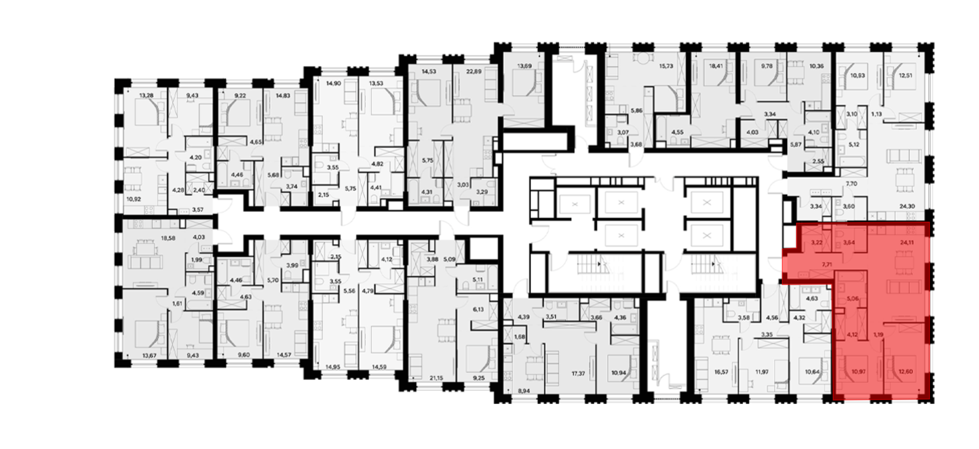 В проекте представлены квартиры с 1–4 комнатами, включая европланировки, двухуровневые форматы, варианты с террасами, лоджиями, а также опции с мастер-спальнями и гардеробными. В помещениях установлены увеличенные или панорамные окна, а высота потолков варьируется от 2,85 до 3,1 м. Из некоторых квартир открываются виды на Москву-реку. Также, для дополнительного комфорта жильцов, предусмотрены системы умного дома и климат-контроля.