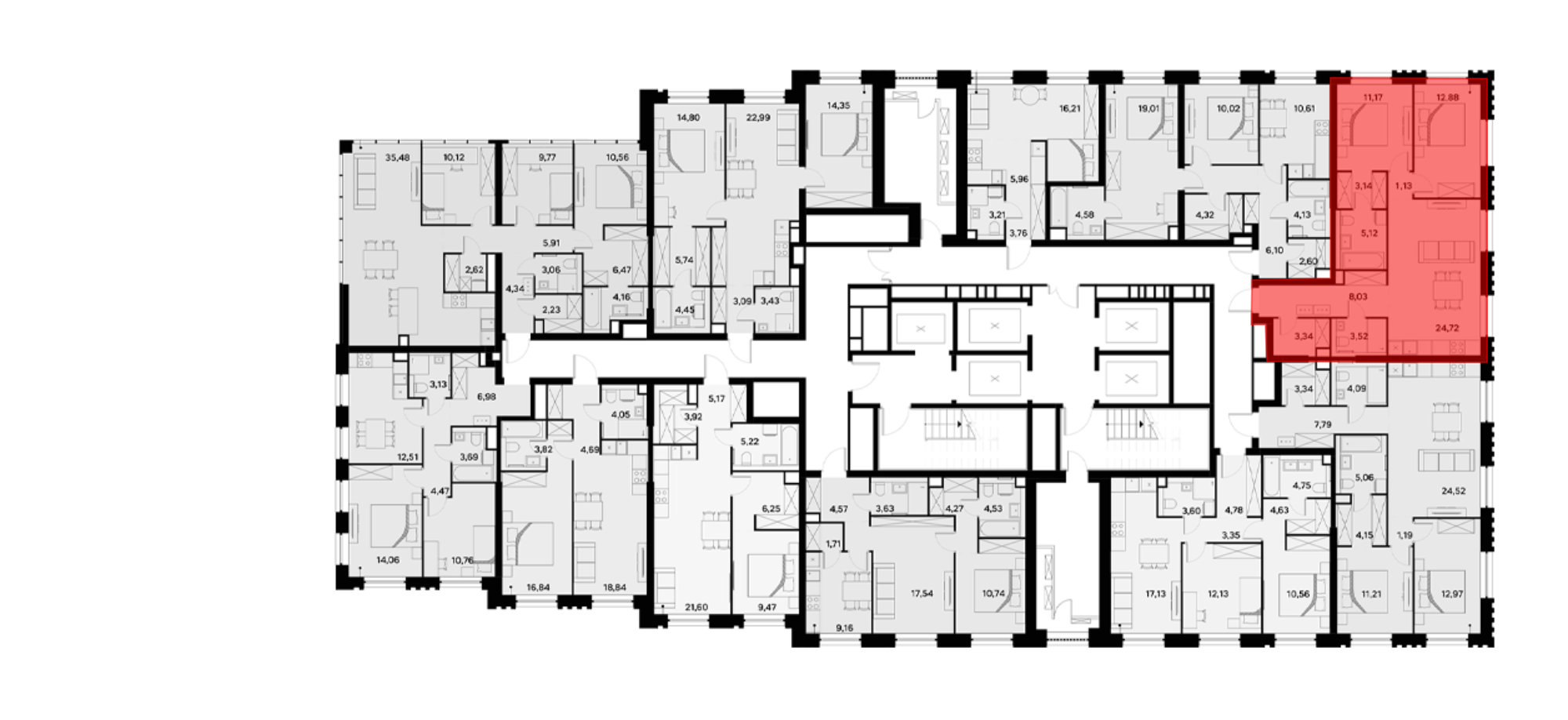 В проекте представлены квартиры с 1–4 комнатами, включая европланировки, двухуровневые форматы, варианты с террасами, лоджиями, а также опции с мастер-спальнями и гардеробными. В помещениях установлены увеличенные или панорамные окна, а высота потолков варьируется от 2,85 до 3,1 м. Из некоторых квартир открываются виды на Москву-реку. Также, для дополнительного комфорта жильцов, предусмотрены системы умного дома и климат-контроля.