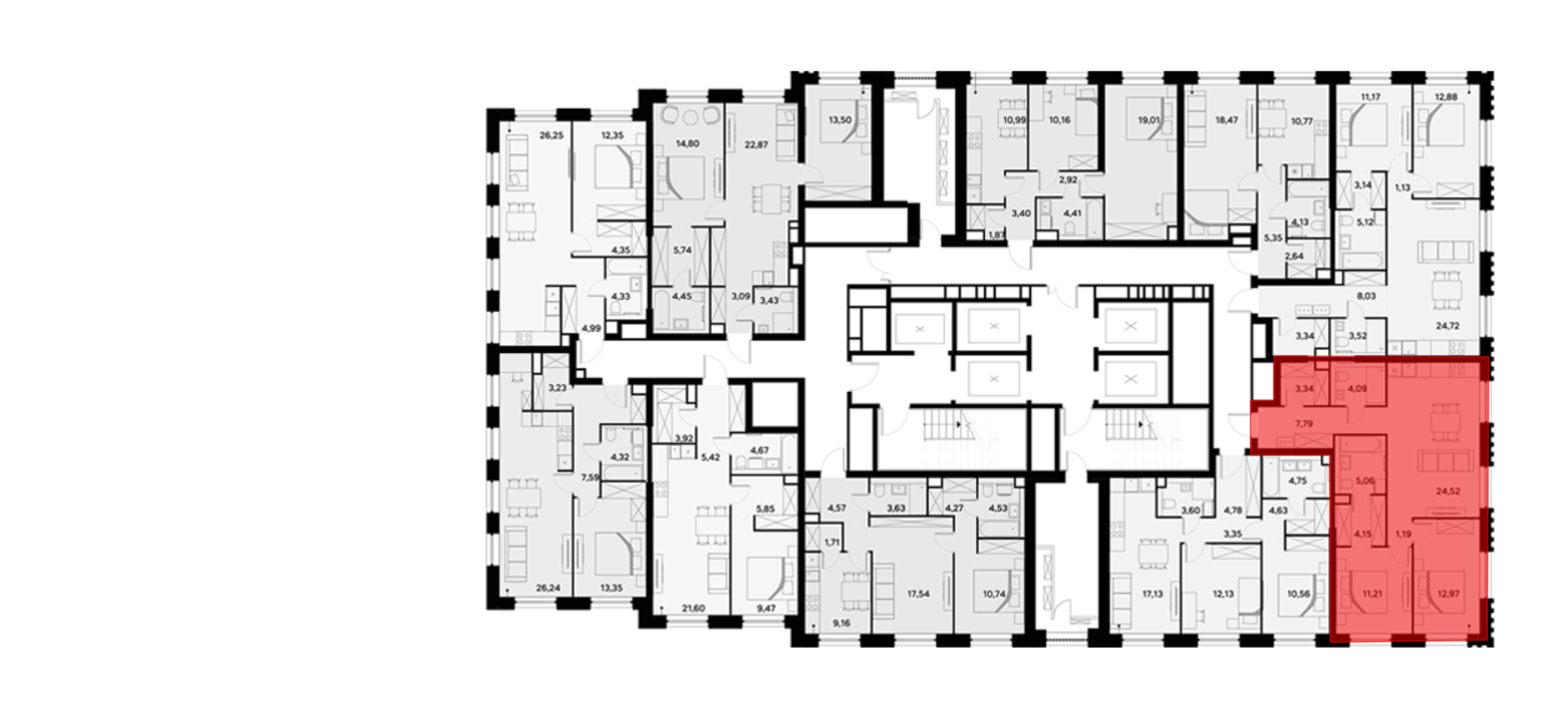 В проекте представлены квартиры с 1–4 комнатами, включая европланировки, двухуровневые форматы, варианты с террасами, лоджиями, а также опции с мастер-спальнями и гардеробными. В помещениях установлены увеличенные или панорамные окна, а высота потолков варьируется от 2,85 до 3,1 м. Из некоторых квартир открываются виды на Москву-реку. Также, для дополнительного комфорта жильцов, предусмотрены системы умного дома и климат-контроля.