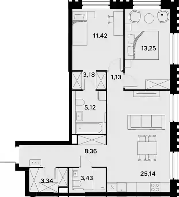 25 697 054 ₽2-к.квартира, 57.43 м², 31 эт.