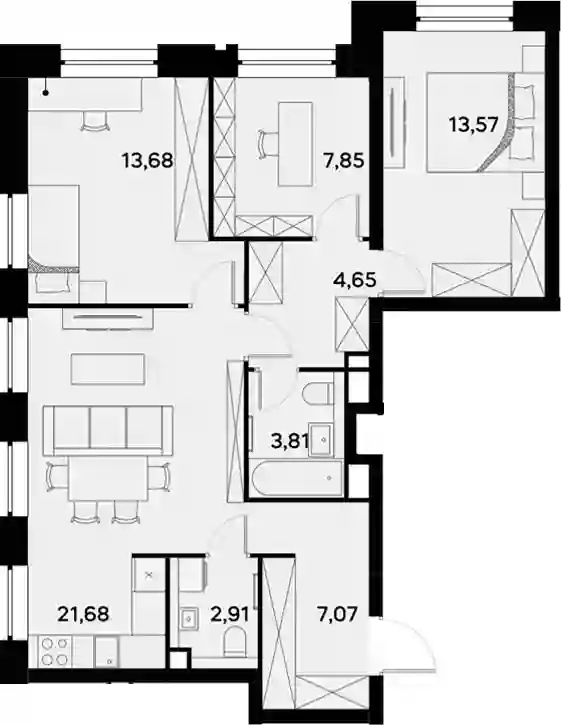 37 255 680 ₽3-к.квартира, 69.3 м², 11 эт.