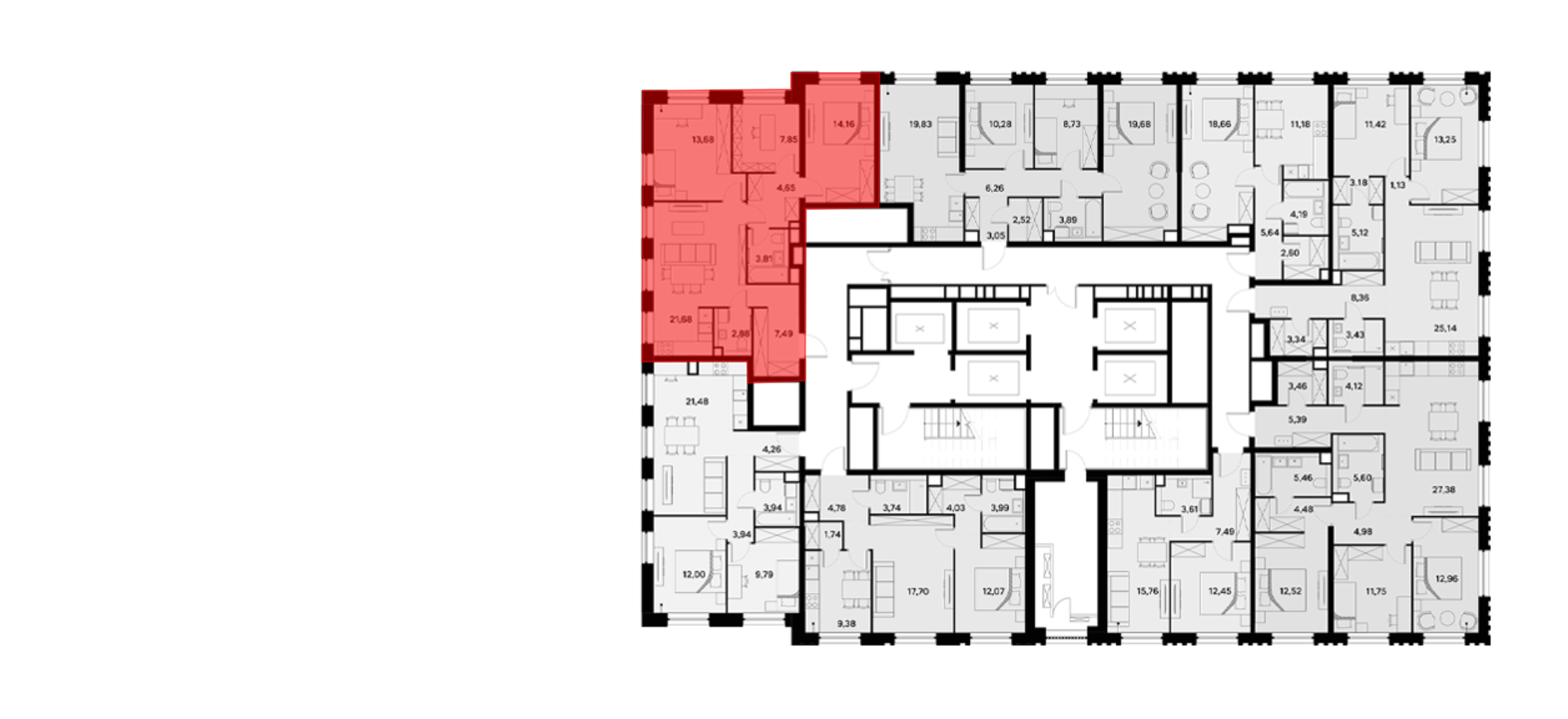 В проекте представлены квартиры с 1–4 комнатами, включая европланировки, двухуровневые форматы, варианты с террасами, лоджиями, а также опции с мастер-спальнями и гардеробными. В помещениях установлены увеличенные или панорамные окна, а высота потолков варьируется от 2,85 до 3,1 м. Из некоторых квартир открываются виды на Москву-реку. Также, для дополнительного комфорта жильцов, предусмотрены системы умного дома и климат-контроля.