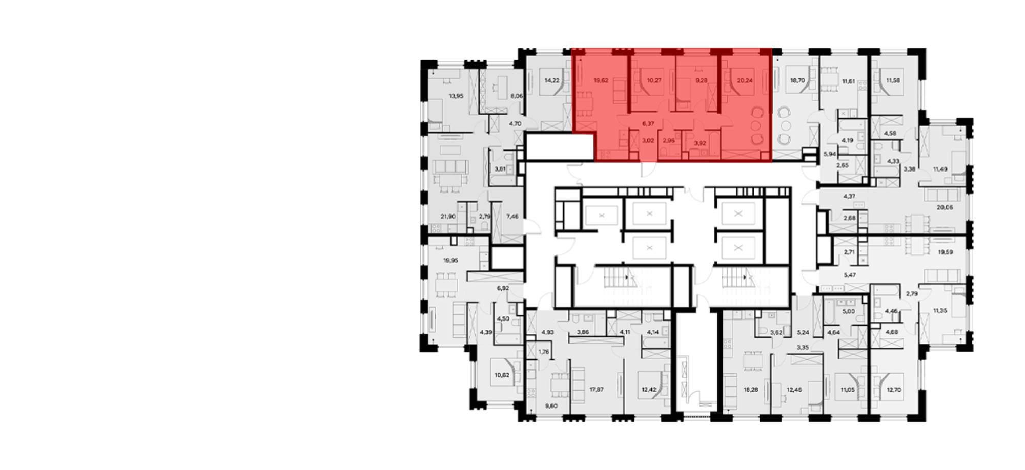 В проекте представлены квартиры с 1–4 комнатами, включая европланировки, двухуровневые форматы, варианты с террасами, лоджиями, а также опции с мастер-спальнями и гардеробными. В помещениях установлены увеличенные или панорамные окна, а высота потолков варьируется от 2,85 до 3,1 м. Из некоторых квартир открываются виды на Москву-реку. Также, для дополнительного комфорта жильцов, предусмотрены системы умного дома и климат-контроля.