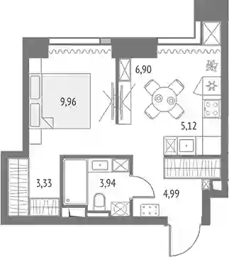 19 908 606 ₽Студия, 32.8 м², 42 эт.