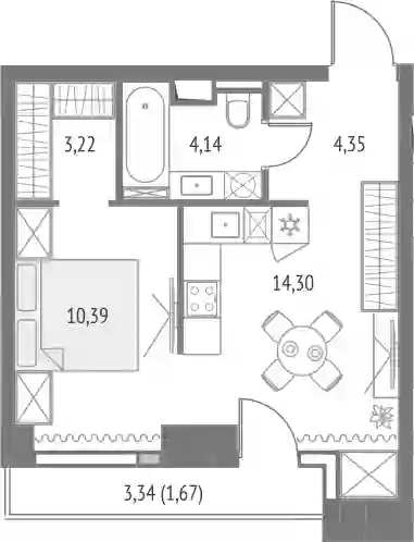 25 806 030 ₽2-к.квартира, 39.3 м², 51 эт.