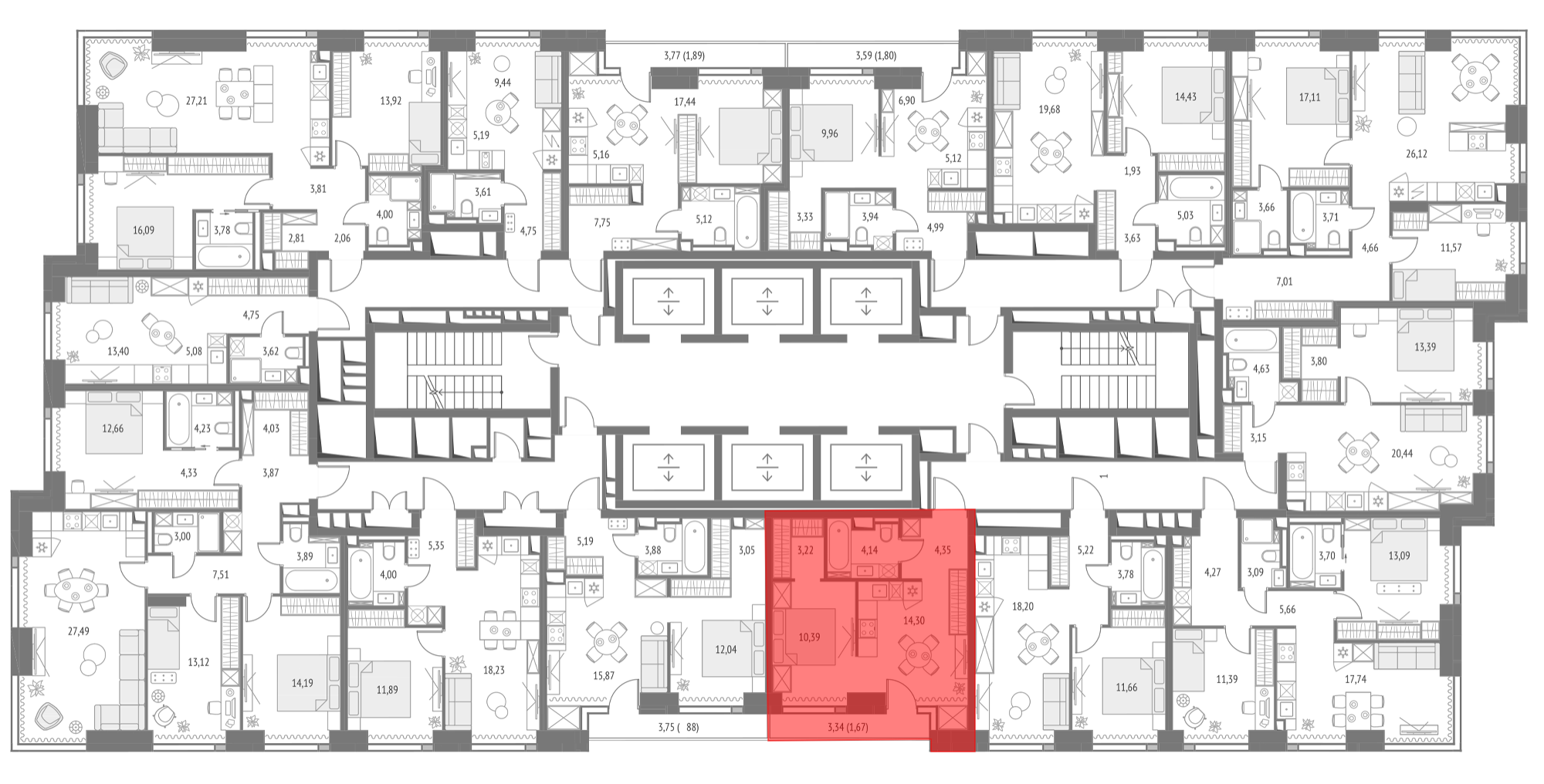 26 407 706 ₽2-к.квартира, 38.91 м², 25 эт.