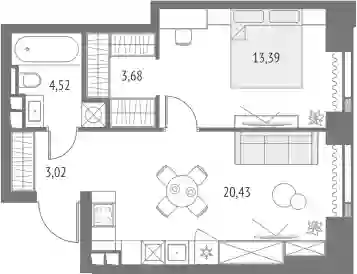 2-к.квартира, 45.04 м², 4 эт. в ЖК Upside Towers Корпус Атлас