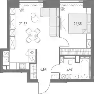 2-к.квартира, 45.93 м², 45 эт. в ЖК Upside Towers Корпус Атлас